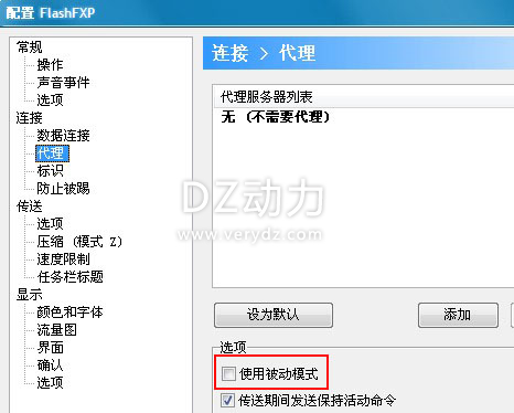 :在選項(xiàng),參數(shù)設(shè)置,連接,代理,去掉使用被動(dòng)模式里面的勾,點(diǎn)確定即可。