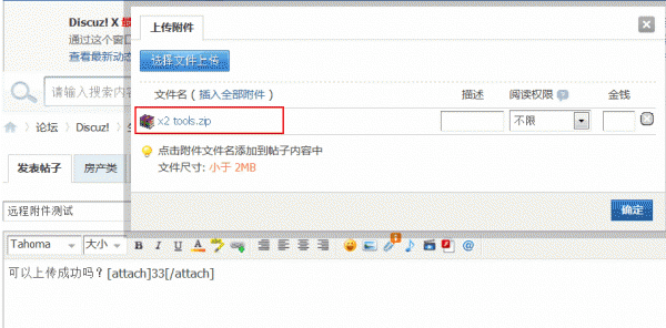 填寫完成后提交,點擊“測試遠程附件”如果填寫正確附件可正常上傳,會提示如下: