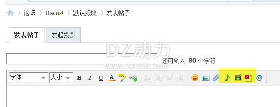 5.在前臺發帖的時候編輯器里有可以看到相關功能了。